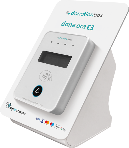 Le donation box contactless sono perfette per qualsiasi tipo di occasione di raccolta fondi. Un evento all’aperto, sul banco dei negozi amici, all’entrata di un museo o di una chiesa.